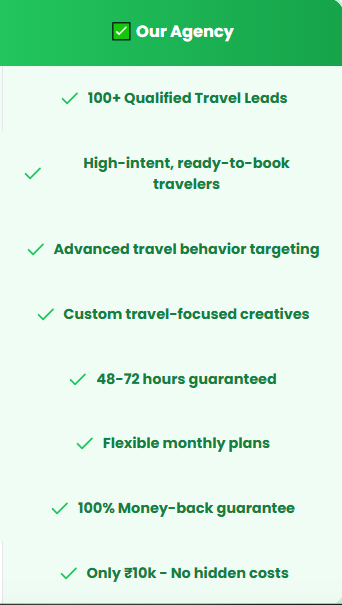 Worked only with travel agencies, managed ₹5 Crore+ ads. We understand the travel industry’s unique challenges, seasonal trends, and what motivates travelers to book.