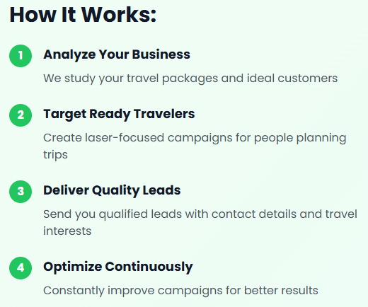 87% of travel agencies struggle with lead generation and waste money on ineffective marketing. But there’s a guaranteed solution!